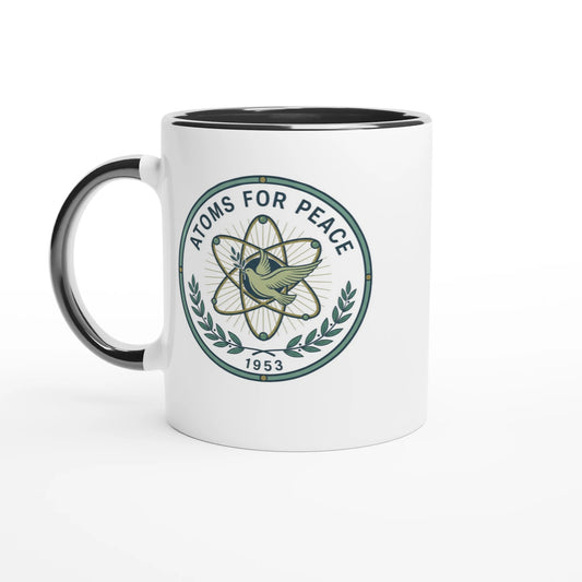 Golden Age of Nuclear Power Ceramic Mug – 11oz with Colored Accents